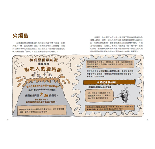 一套共8本的神奇酷地理系列,包含雨林、島嶼、沙漠、風暴、地震、火山、極地、高山等八大主題,每一主題有探險歷程、地科原理、生態奇景、自然景觀、人文故事、環境省思……內容包羅萬象,精采可期。