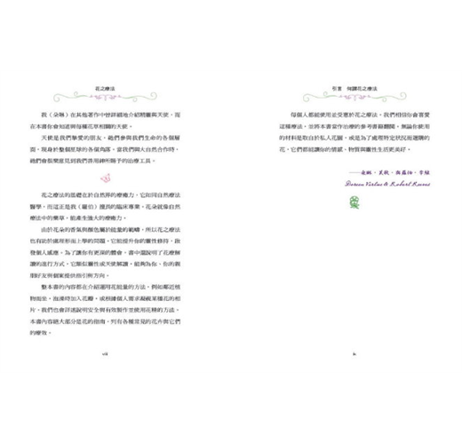 整本書的內容都在介紹運用花能量的方法,例如鄰近植物而坐,泡澡時加入花瓣,或根據個人需求凝視某種花的相片。我們也會詳述說明安全與有效製作並使用花精的方法。本書內容絕大部分是花的指南,列有各種常見的花卉與它們的療效。