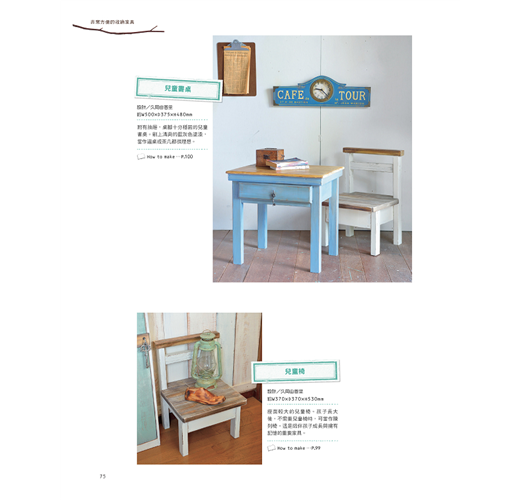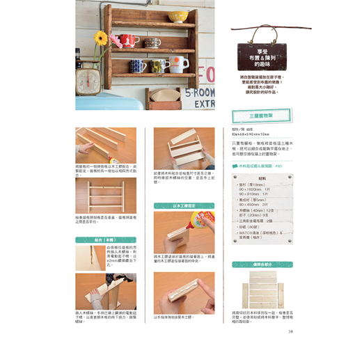 本書介紹六位屋主花費許多時間與精心設計家中每一個迷人角落,提出木工雜貨至大型家具的款式構想與圖解Step by Step製作過程,更蒐集了各種可以用於飾品或裝飾的方法,訪問了數位創作者加以示範&圖解,詳盡說明。