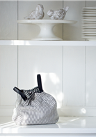 某年冬天,我在達拉那地區的一間手工印花布工坊,邂逅了令人驚豔的美麗布料。厚質棉布上色彩繽紛的植物與蜻蜓,看了一眼就愛不釋手,於是把它作成我的第一個布包,什麼物品都可以放進去,輕巧且可以帶著四處趴趴走,我在開始製作各式各樣的布包中,體會到這樣的樂趣。