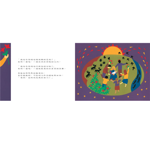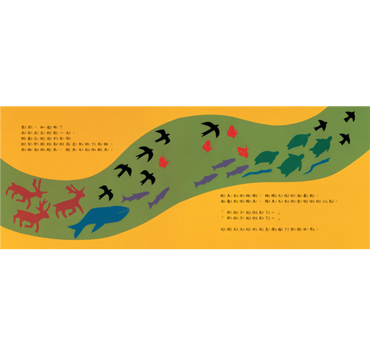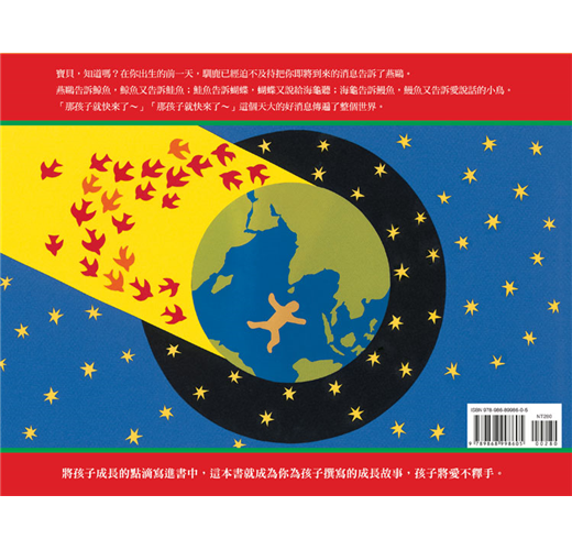 燕鷗告訴鯨魚,鯨魚又告訴鮭魚;鮭魚告訴蝴蝶,蝴蝶又說給海龜聽;海龜告訴鰻魚,鰻魚又告訴愛說話的小鳥。「那孩子就快來了~」「那孩子就快來了~」這個天大的好消息傳遍了整個世界。