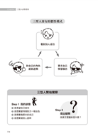 瞭解性格之後,更重要的就是學會為自己的行為負責,不再用「我就是這樣」、「我沒辦法」等藉口來輕視自己或踐踏別人。思宏在書中提出「覺察」、「整理」、「轉變」三大步驟,讓我們得以持續行動,實際改變慣性模式,用新的眼光面對生活,找到生命的意義。
