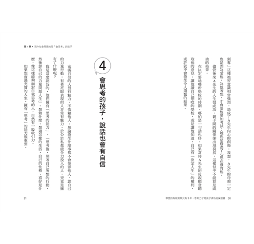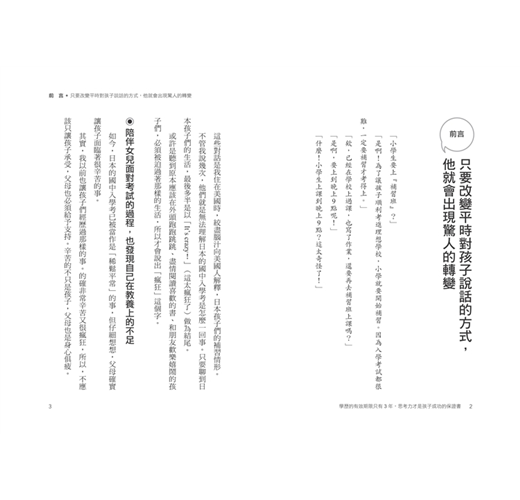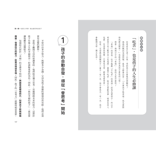 其實,每個孩子都是獨立的個體,都有獨立思考的權利;訓練孩子如何思考,也是身為父母的任務之一。作者告訴我們,教出「會思考」的孩子,只需要掌握5個訣竅: