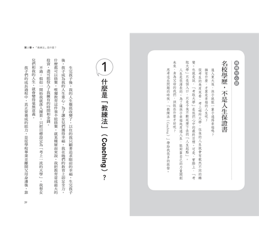 我接受過的諮詢中,非常多人提到「如何跟孩子對話比較好?請教我具體詳細的做法」。因此,本書將「父母該怎麼做才能成為孩子的教練?該怎麼跟孩子對話比較好?」的「親子互動方式」,彙整成「教練法」給各位。