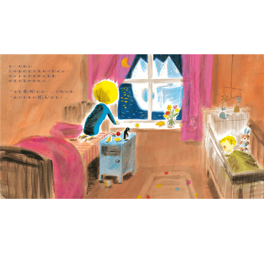 過去爸媽的生活重心都是以他為主,突然間,爸媽的焦點全都放在寶寶身上,對幼兒來說,寶寶是個不速之客,可能會搶走他所擁有的一切…可想而知,孩子內心是多麼恐懼不安。這個故事以幼兒的角度出發,讓大人在教導「分享」時,也能站在孩子的立場,去體貼大孩子害怕失去父母關注的焦慮心情。真心推薦,孩子一定會喜歡!