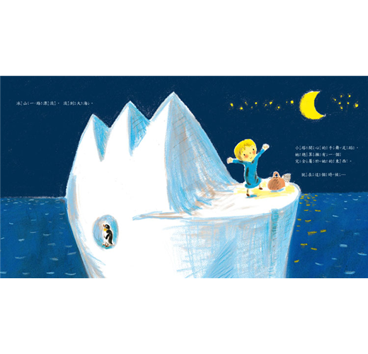 有一天夜裡,小塔發現窗外漂來一座冰山,她想:「這是我的冰山,我才不要和別人分享!」於是,她帶了心愛的寶貝前往冰山探險。不料,冰山上早有一隻企鵝…