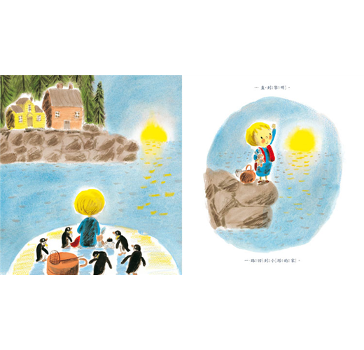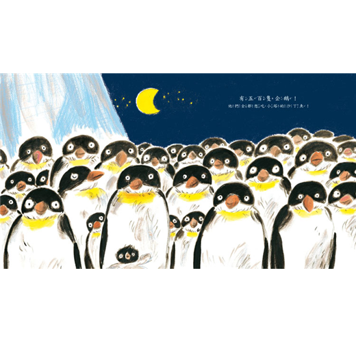 我和小孩都好喜歡這本書的插畫,「啪答!啪答!」企鵝的腳步聲,在翻頁間不斷回響,當畫面出現一大群企鵝,睜著好奇大眼直視前方時,讓人忍不住說:「好可愛!」我們也好喜歡企鵝和小塔在冰山上開心溜滑梯的樣子,還有企鵝合力拉著冰山帶小塔回家…這些可愛的企鵝不僅友善,也很互助合作呢!