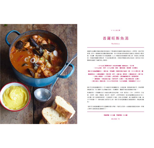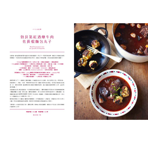 本書涵蓋了勃艮第紅酒燉牛肉還有紅酒燉雞等知名法式餐點,但這並不是另一本經典法式食譜集。這些故事是我發掘每道食譜的親身體驗,無論是仲夏夜塞納河畔野餐、與朋友聚餐,或是在家實驗的種種。有些部分我加了自己的創意變奏,讓這本書成為一本方法創新又簡單的法式經典料理入門,是與親友分享的完美選擇。