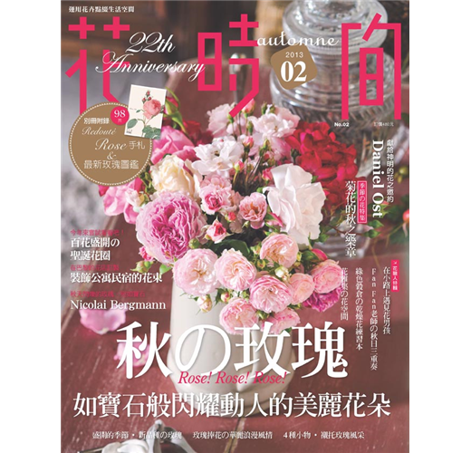 隨著秋天的到來,美麗的玫瑰也迎接盛放的季節,一朵朵不同色彩宛如珠寶般擁有美麗的光輝。比利時花藝師Nicolai Bergmann以充滿手感的花藝作品,呈現出玫瑰不一樣的風貌。另外搭配上四種小物,就可以簡單作出極具風味的玫瑰布置。還有華麗的玫瑰花束與配花的搭配,在在都展現玫瑰非凡的魅力。本期並附贈Redouté的手繪玫瑰花筆記本與玫瑰圖鑑,讓愛好者可以更深入了解玫瑰的點點滴滴。