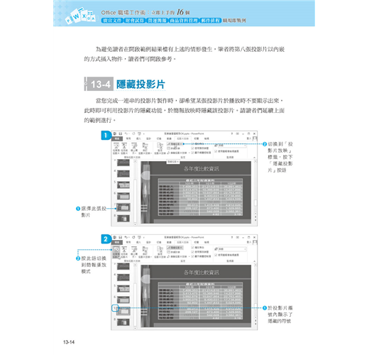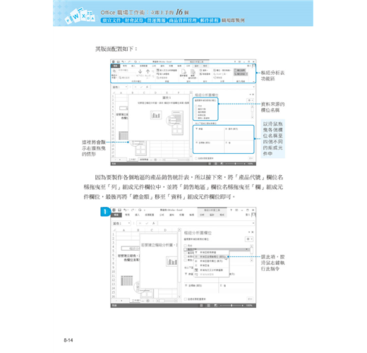 本書係以職場中最常遇到的文書工作範例為主軸,完全採用步驟圖解化將Office的重要功能與新增技巧逐一展現與引導,深入淺出的內容充分符合商務活用與溝通設計的高效實用主題。