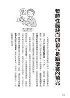 本書便告訴讀者哪些生活習慣可能會引起腦中風,並且告訴我們哪些人可能是高風險族群、該如何預防、又可以如何先治療。此外,腦血管疾病主要可分為阻塞性和出血性腦中風,因此,書中也分別針對不同類型的腦中風做最完整又易懂的講解,從如何檢查、治療、預防併發症、復健到預後等狀況完整用漫畫呈現出來,並加上詳細的文字解說內容。
