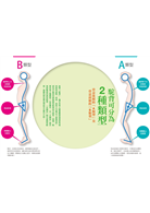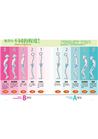 駝背可分為2種類型,背部隆起的典型駝背及隱性駝背。本書介紹的方法均適用於此2種駝背類型。此外,駝背程度會因人而異。因此本書將駝背依程度輕重大致分為5種階段,並提供個別的改善方法。