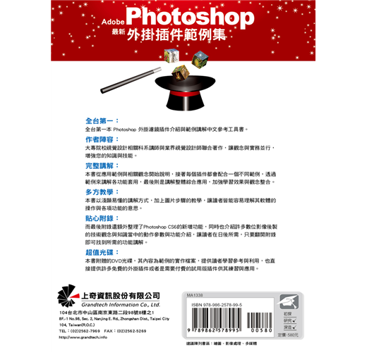 全台第一本Photoshop外掛濾鏡插件介紹與範例講解中文參考工具書。
