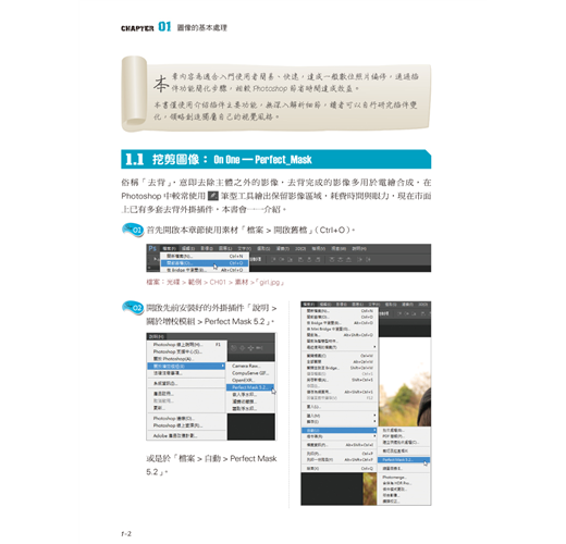 本書講解過程中,作者群根據各種外掛濾鏡的處理功能與特色,經過討論與修改,精心挑選了許多容易展示其外掛特色效果的圖像素材,同時詳細對該章節所敘述的外掛濾鏡工具,針對其工作方式和原理、使用方法、參數設置及應用效果進行了詳細的介紹,並為每一個外掛濾鏡設計了典型的應用實例。