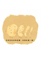 這是【好多好吃的】系列第三本。作者山岡光的繪本有個優點,就是將繪本裡的食物變化成跟實品幾乎一模一樣,不只栩栩如生,更讓人垂涎三尺呢。我覺得這本繪本好適合跟孩子一起編成一首「熱呼呼馬鈴薯歌」喔。唯一要挑毛病的話,就是最後的可樂餅,高麗菜絲有點太少了,請再多給一些吧!