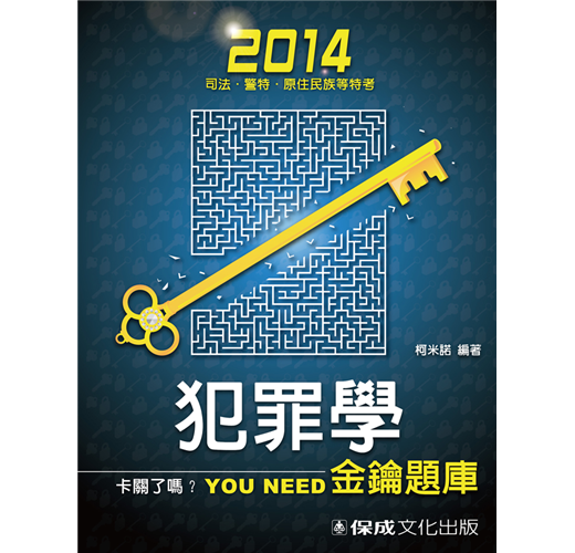 收錄了犯罪學的歷年重要考題,雖以題庫的形式出版,但因深知此類書籍常給人「堆疊大量考題」的刻板印象,為了不讓考生在閱讀艱澀的理論之後還要面對前仆後繼的、彼此似無關係的考題,所以試圖為這些考題套用一個具有邏輯的架構,以減輕考生的心神負擔。且本書的每一節開頭皆附有一張理論圖,列有各個理論的相關重點,加深讀者架構概念。