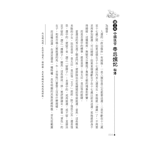 本書揭露中國帝王後宮,怵目驚聳的秘辛,有極其瞠目咋舌、精彩絕倫、鮮為人知的史蹟軼事。