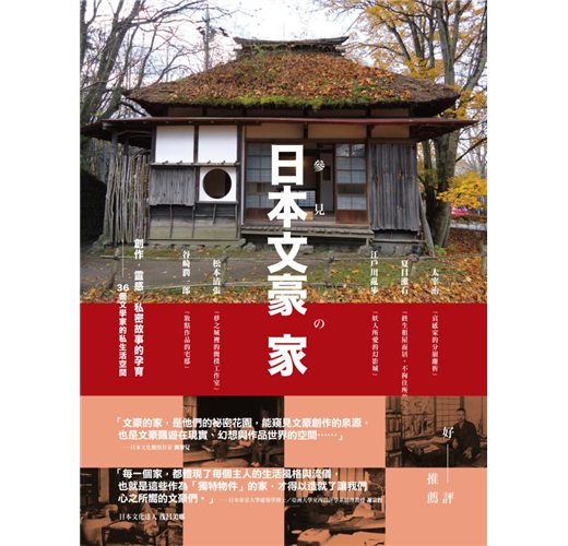 名人推薦:「文豪的家,是他們的祕密花園,能窺見文豪創作的泉源,也是文豪飄遊在現實、幻想與作品世界的空間,是理想書城與執筆基地,從明治到昭和純樸書色以及日式、仿歐或和洋折衷的建築所構成的古色古香,在當代已經難以重現了。