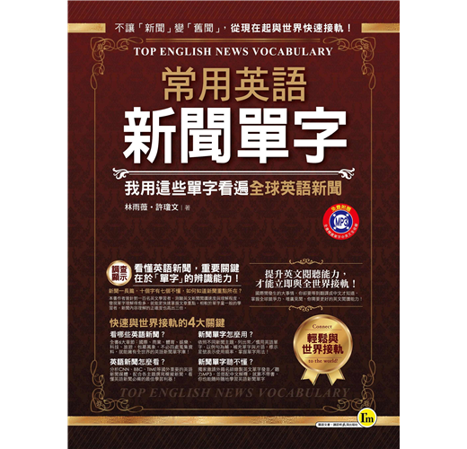 英語新聞不只報章雜誌,更多時候我們需要看新聞影片、聽廣播報導,光會閱讀絕對不夠,獨家邀請外籍名師錄製英文單字發音/聽力MP3,並搭配中文解釋,就算不帶書,你也能隨時隨地學習新聞英文單字!
