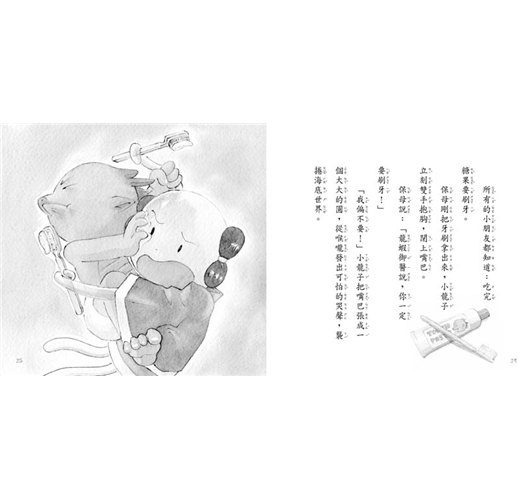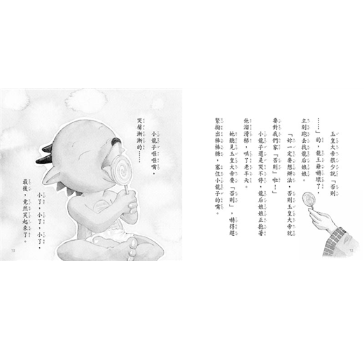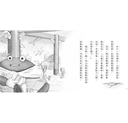 一陣哭聲,龍王爺第十個兒子出生啦!這個小龍子好愛哭喔,龍后娘娘搖搖,抱抱,轉轉,小龍子都不領情,照樣哭得驚天動地,嚇得寄居蟹連夜搬家,十幾隻大翅鯨飛出海面。龍后走投無路,只好掏出棒棒糖,塞住小龍子的嘴,才讓小龍子破涕為笑。從此,沒有人敢違背小龍子的命令,他想吃糖就吃糖,否則海底世界就要遭殃。可是,小龍子只愛吃糖,不愛刷牙,沒多久,一百六十八顆牙齒就全蛀光了……閱讀這本書,讓愛哭的孩子有所借鏡,改掉壞習慣,做個笑臉迎人的好孩子!