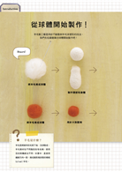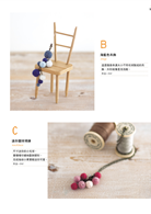 從基本入門課-製作球體開始,透過書中一步步的圖片及文字說明,戳啊戳的,一顆顆圓滾滾的、色彩豐富的羊毛氈球就完成了。這時只要再加上一些簡單的五金配件,就能做出各式各樣的服飾配件、家居擺設、飾品。接下來開始學習不同的形狀的作法,像是水滴形、心形、花朵等,搭配起來會呈現更多元的樣貌。此外,還有可愛的小動物或吉祥物小玩偶,能為生活帶來多采多姿的歡樂氣氛。