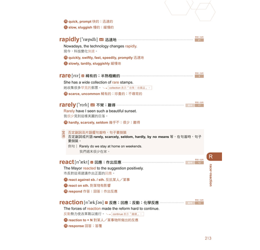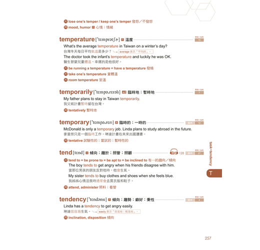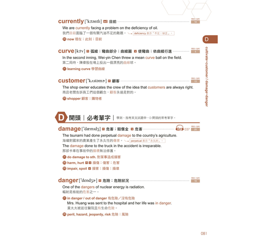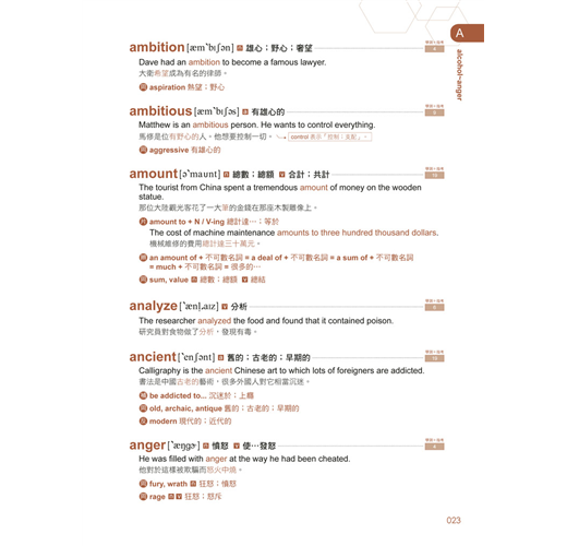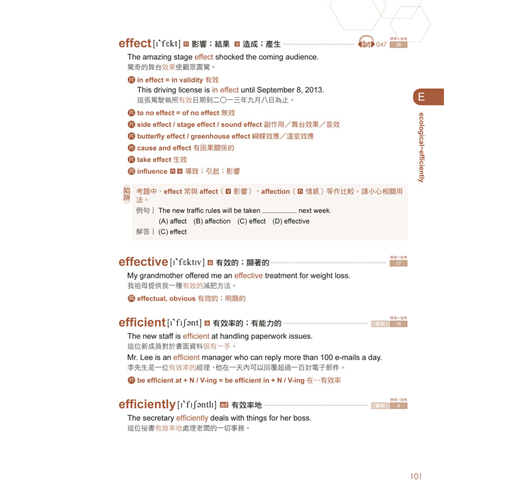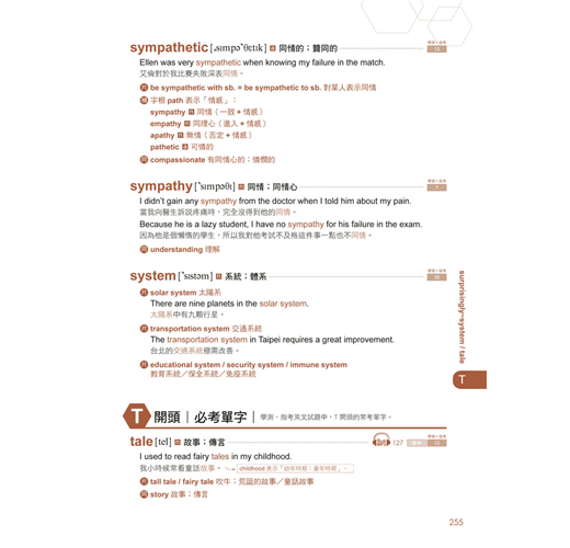單字詳盡補充同反義字、相關片語、動詞三態,另針對相似字與易混淆字進行說明,一次學到相關單字,在答題時才不會被類似的單字選項混淆。