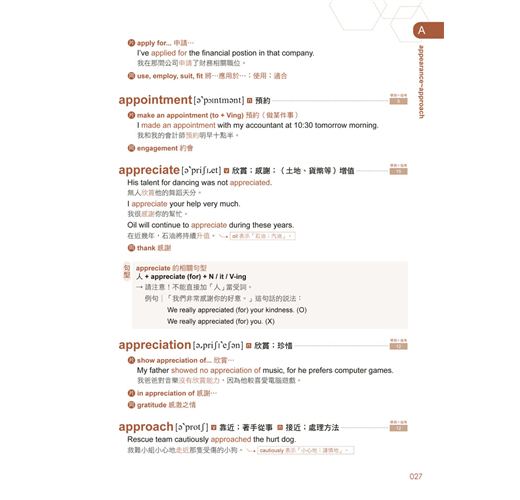 單字必須跟著句子一起學習,如此才能瞭解單字的正確使用方式、熟悉英文論述語氣,面對考題才不會恐懼,更能培養英文作文與翻譯的書寫能力。