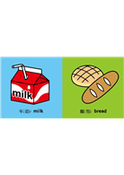 每一種食物圖片都有中、英文雙語名稱,並附上注音,讓小寶貝邊看圖邊學習識字,輕鬆學習兩種語言。