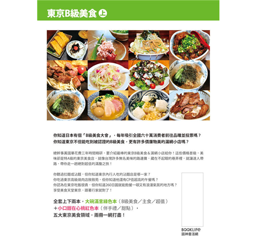 東京是美食天堂,但是價格總是讓你不敢吃太多?踏訪日本超過50次的總幹事黃國華,要介紹最棒的東京B級美食給你!這些價格普級,美味卻是特A級的東京美食店,就像台灣許多無名美味的路邊攤,藏在不起眼的巷弄裡,就讓達人帶路,帶你走一趟絕對超值的滿腹之旅!