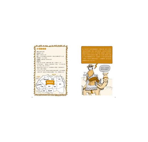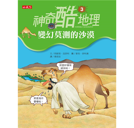 神奇酷地理系列中,這本《變幻莫測的沙漠》,正是具有這樣特質的圖文書。沙漠中的種種故事,探險的、歷史的、自然生態的、地球科學的,各式各樣和沙漠有關的議題,雖然和我們周遭的生活經驗完全不同,但是,藉著書本中淺顯易懂的圖文解說,了解沙漠地區或乾燥氣候區的各種樣貌,好像也不太困難了。舉個例子來說吧!或許有人認為在又乾又熱的沙漠中,不太可能有生物存活,但事實卻非如此,而且,這些沙漠生物都有牠們的生存絕招,像生活在非洲納米比沙漠的沐霧甲蟲,竟然是用倒立的方式收集霧氣,讓水滴在身上凝結,並順著流入口中,實在太神奇了!再舉個關於沙漠「寶藏」的例子吧!絕對可以推翻一般人認為,沙漠就是一片焦沙爛石的刻板印象。沙漠中有著維生保命的鹽、讓沙烏地阿拉伯等國家變得十分富有的油礦、(真是寶藏啊!)還有玻璃和璀璨的鑽石,以及取用不竭的太陽能(換個角度看待,沙漠烈日反而是寶了)。凡此種種,你還會覺得沙漠只是黃沙滾滾的不毛之地嗎?
