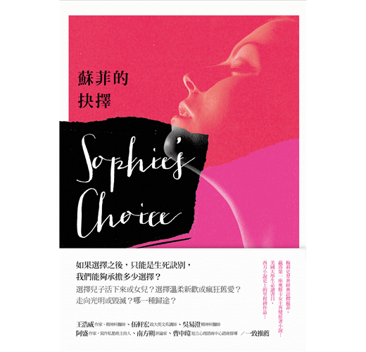 在經歷過人生的許多悲歡離合,許多憂喜病痛後,「蘇菲的抉擇」深深觸動我。人常常在做過選擇後悔悟,更多質疑,如果當初……?可是,就像詩人佛洛斯特(Robert Frost)所寫的〈未走的那條路〉(The Road Not Taken)一樣:眼前兩條路,我選了其中一條,便造就了以後種種的截然不同了。一旦做了選擇,就沒有回頭的機會。這是蘇菲的抉擇,也是你我的抉擇。──謝瑤玲(東吳大學英文系及政治大學英語系副教授)