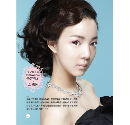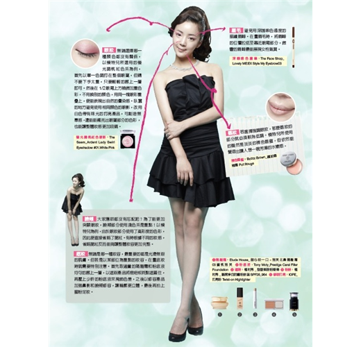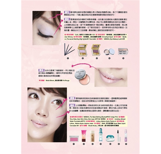 每個女孩都有一套自己習慣的化妝法,配上金承源示範的色彩搭配,必定能有事半功倍的效果。將眼睛、嘴唇和臉頰的色彩搭配好,透過完整和諧的妝感,讓自己變身成最美麗的女人。