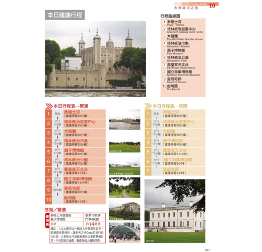 倫敦的城市光景絕非幾日行程就能遊覽完畢,每一區更有其特色獨具、非去不可的觀光重點,華麗古典的王宮古堡、充滿藝術氣息的博物館等,全都是值得一遊的著名景點。本書分類規劃河畔懷舊、個性小舖、世界遺產、英式亭園……十四條不可錯過的自遊行程,並提供悠閒與緊湊二種不同選擇,詳列旅程中的各種情報與貼心叮嚀,帶你暢遊市區與郊區的風景名勝,深入品味倫敦多樣風情!