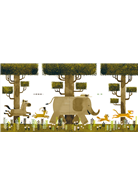 彼得.布朗用突出的亮橘色描繪主角……欣喜的逃到像盧梭畫裡的世界,那裡有濃密的蕨類植物、高大的棕櫚樹和多層次的瀑布。