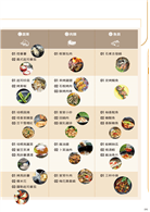 酸辣濃湯・懶人咖哩・炒碼麵・百菇菜飯・廣東粥・培根高麗菜・蜜豆茶凍・馬鈴薯濃湯・梅花壽喜鍋・麻油雞・卜菜滷肉・蛤蜊絲瓜・燒酒蝦・麻油魚片