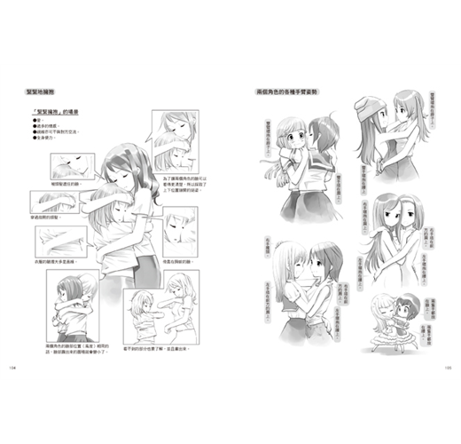 在本書裡,將兩個角色因為肢體接觸所形成的姿勢裡特別常見的種類,概分為「並列型」「揹負型」「背對型」「面對型」共4大類型。