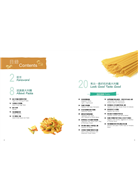 傅季馨運用多年經驗,把平常教學和在義大利一星米其林餐館的實戰經驗結合,策畫出5款常用高湯、4款自製的麵條、2款萬用醬汁、製作出45盤的Pasta。從認識義大利麵的種類、到實際製作義大利麵都有詳細的介紹,由淺入深讓新手第一次煮義大利麵就能輕鬆上手!