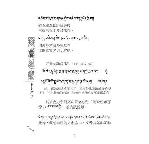願此占卜法能真正有利於迷茫之眾生,使他們能從中找到明確的指點,遣除疑惑,取得定解。並以此為契機,從而獲得政法的光明珍寶。