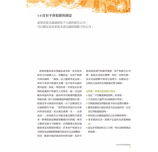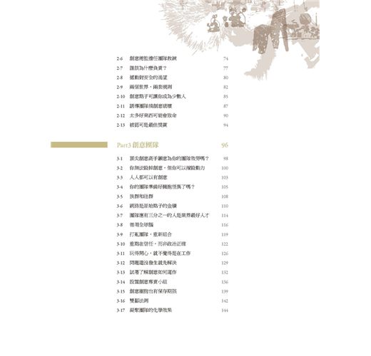創意文化如何形成?如何帶領團隊培養出更豐沛的創造力?是什麼阻礙點子源源不絕地產生?該如何排除它們?本書一再提出發人深省的意外解答,勢將引起業界激烈爭論!並挑戰種種不利於創作的神話,如腦力激盪、書面簡報的重要性、客戶在創作過程的角色、只有藝術家具備創造力等。──德國廣告行銷部落格書評朗恩(Thomas Langel)