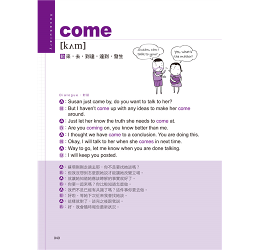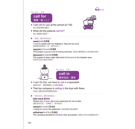 作者精心設計段落對話,搭配生動活潑的情境圖,更穿插使用該單元動詞和動詞片語的用法在對話中,讓你馬上瞭解其差異,馬上就把英文學好。