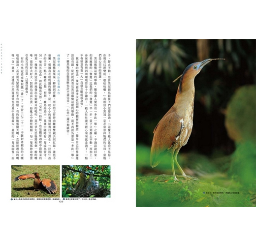 ★鳥事知多少:介紹書中野鳥不為人知的生活習性及傳奇故事等,如五色鳥的巢洞「裝潢」狀況如何、夜鷺為何在夜間行動、秧雞飛不飛、什麼叫做「猛禽」、翠鳥怎麼洗澡、撿到落地的小鳥怎麼辦等大大小小的知識整理。