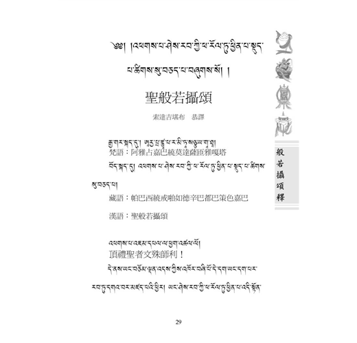 書中特附上中藏文對照的頌詞,方便廣大的藏文及中文讀者相互參照、幫助理解,並獲得傳承上師的加持。