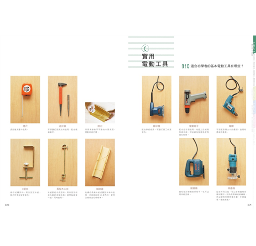 這本書提供了許多讓讀者參考的實用作品,即使是初次接觸木工的人,都可以簡單上手,內文說明沒有艱深的專業用語,也沒有困難的加工技法,完全從學習者的角度出發,只要跟著單純的製作順序就可以完成。同時,也不需要昂貴或特殊的工具,只要準備基本材料,如木板、鐵釘、螺絲…等,甚至是小朋友都可以一起加入木工的行列。