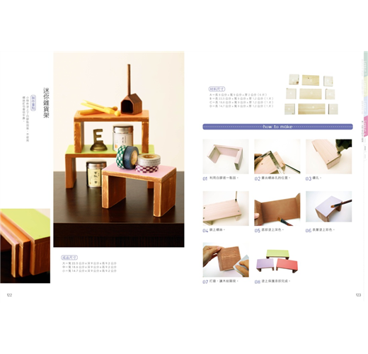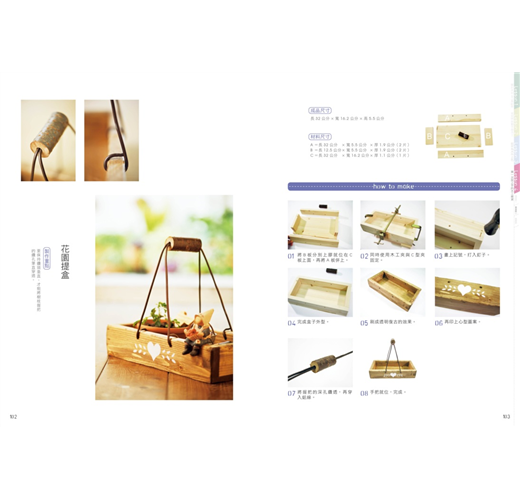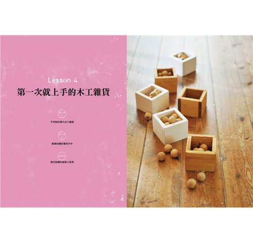 利用雙手完成作品,不只是一種幸福,得到的成就感更是無價。讓DIY的興趣慢慢變成日常生活的一部分,不但能提昇居家生活品質,也能增進內在心靈的滿足。請與你的家人一起來玩簡單的木工雜貨吧!