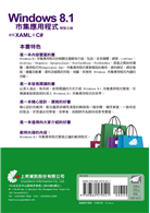 ‧ 是一本內容豐富的書 Windows 8.1 市集應用程式的相關主題都有介紹,包括:含多媒體、網頁、ListView、GridView、WrapGrid、SemanticZoom、RichTextBlock、RichEditBox、頁面之間如何導覽、應用程式列(Application Bar)、市集應用程式專案樣版的應用、資料綁定、綁定樣版、繪圖及動畫、資料及檔案的存取、地圖,來使用Windows市集應用程式內建的功能。