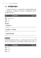 下圖為本書內頁Linux指令介紹的圖示說明: