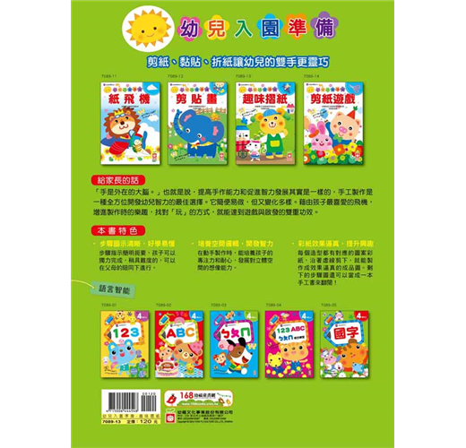 「手是外在的大腦。」也就是說,提高手作能力和促進智力發展其實是一樣的,手工製作是一種全方位開發幼兒智力的最佳選擇。它簡便易做,但又變化多樣。藉由孩子最喜愛的摺紙造型,增進製作時的樂趣,找對「玩」的方式,就能達到遊戲與啟發的雙重功效。