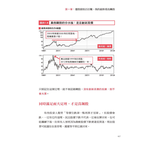 即使你所研究的股票不像蘋果或微軟這麼經典,也沒關係,你只需記住這個定理,就不會認錯飆股:沒有創新高價的股票,就不會大漲。