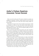 然而,對我而言,就不是這麼一回事了!我為了更了解兒子而進行為期六個月的台灣之旅,完全改變了我的生命。我有時會有這樣的念頭:如果當初沒有和西恩意外來到台灣旅行,現在的我不知會在何處?也不知道會在做什麼?