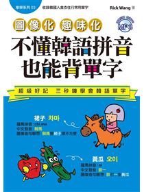 經過自己多方面的親自嘗試,《不懂韓語拼音也能背單字》 就是一本我為所有對韓語有興趣的朋友所寫、所畫的韓語單字記憶本。藉由多種的記憶原理——使用圖像記憶和創意的諧音聯想來加深你對單字的印象,並讓學習加倍快速。當然諧音並不是發音的結果,而只是一把協助的鑰匙,正確的發音還是我們應當重視的。同時運用聽覺學習——利用由韓籍老師所發音的MP3配合圖像和諧音聯想,相信你一定可以快速並輕鬆的記住上百個實用的韓語單字。